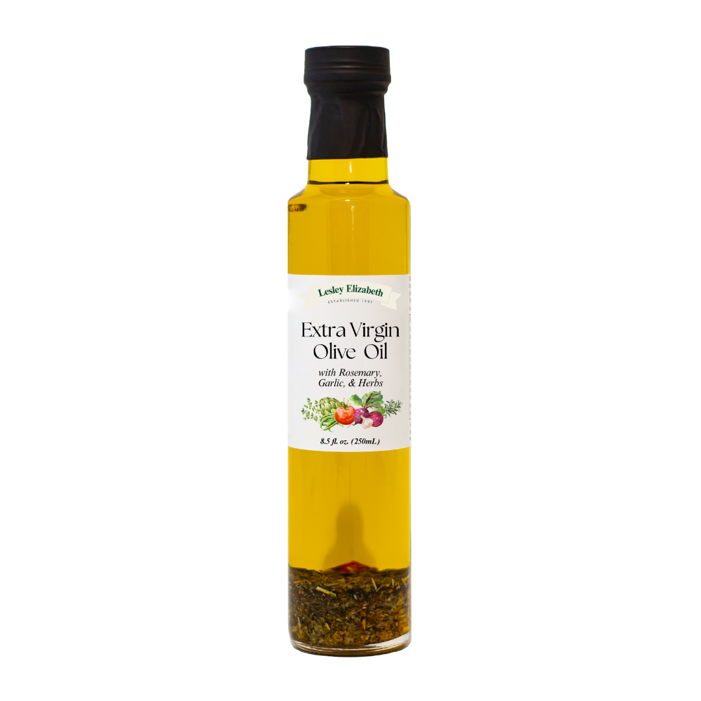 Experience the rich, savory harmony of rosemary, garlic, and herbs in this premium extra virgin olive oil from Lesley Elizabeth. This infused blend adds warmth and depth to any meal—perfect for dipping rustic bread, marinating meats, or drizzling over roasted vegetables. Brush it onto lamb, chicken, or even flatbread before baking for a flavorful, aromatic finish. Ideal for quick appetizers, salads, or gourmet touches that turn everyday dishes into something special.